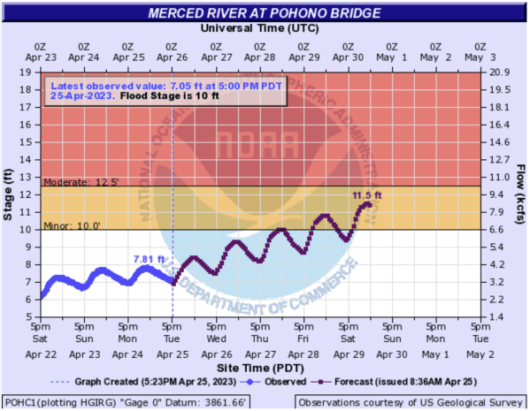 Spring floods are beginning! The water level at Pohono Bridge is rising and the daily surge height is increasing every day. How high will it go? https://www.nps.gov/yose/planyourvisit/conditions.htm https://water.weather.gov/ahps2/hydrograph.php?gage=pohc1&wfo=hnx April data. https://waterdata.usgs.gov/monitoring-location/11266500/#parameterCode=00065&period=P365D Mid June - 6 weeks later And if you want to understand why Tioga Pass is still closed... https://cdec.water.ca.gov/dynamicapp/QueryF?s=TES Wait...175 inches?? That is 4.8... Continue Reading →