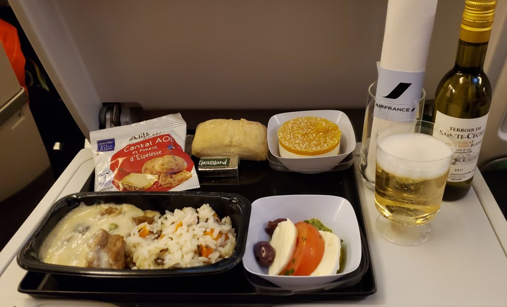 The meal was very very nice, probably the best I’ve had in the air. The roll was fresh, the veal wasn’t overheated, none of the rice was cold or hard, the pastry and mousse dessert was >chef’s kiss>. We should fly Air France more often.