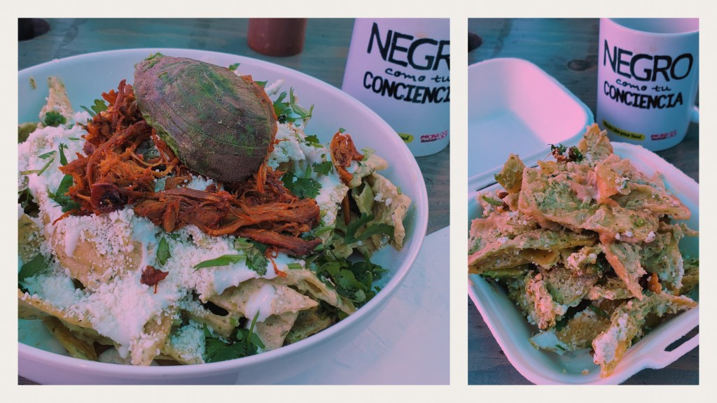 “Creamy habanero-cilantro salsa topped with Cochinita Pibil”. Super thick crunchy chips, spicy, delicious citrusy shredded pork. Expect an hour wait unless you go at opening or closing. Come visit, because we’re definitely taking out of town guests here. And huge portions… My take home container looks like a full entree…