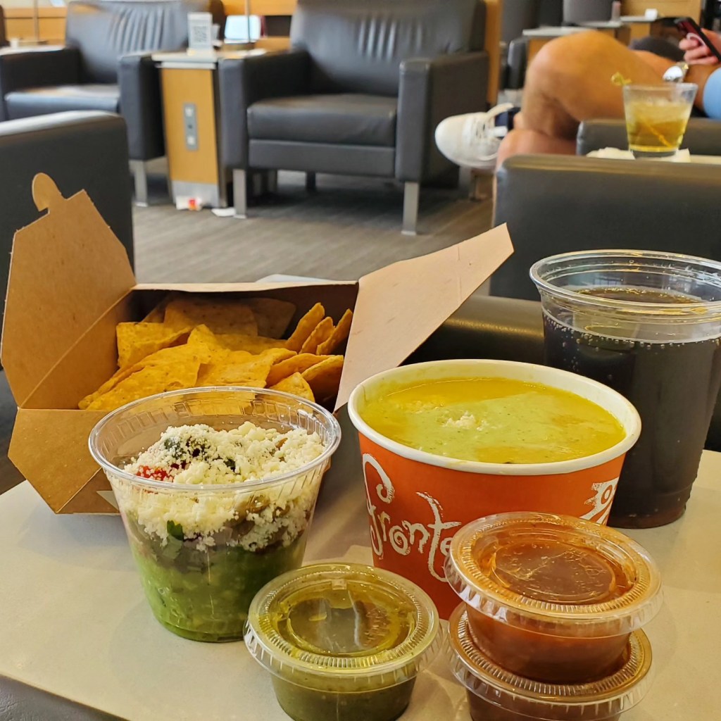 We love American’s Admiral Lounge in Chicago for its gargantuan size and its proximity to Rick Bayless’ Frontera Grill In Hall F. This time I was able to tear myself away from the Tortas to try the Poblano chowder (adding chicken) and the loaded Guacamole. Highly, highly recommended. There is a reason Rick has been going strong since the 80s…
