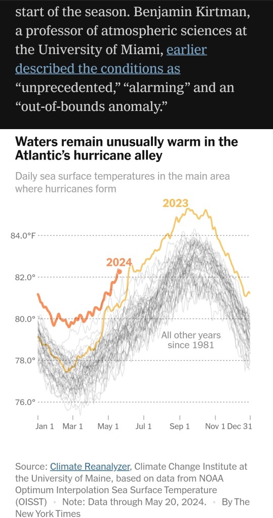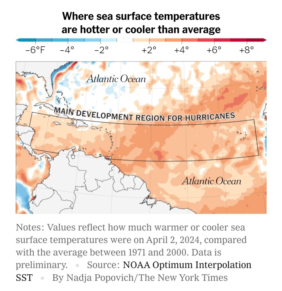 ‘Alarming’ Ocean Temperatures Suggest This Hurricane Season Will Be a Daunting One https://www.nytimes.com/2024/04/04/climate/ocean-temperature-hurricane-forecast.html?smid=nytcore-android-share
