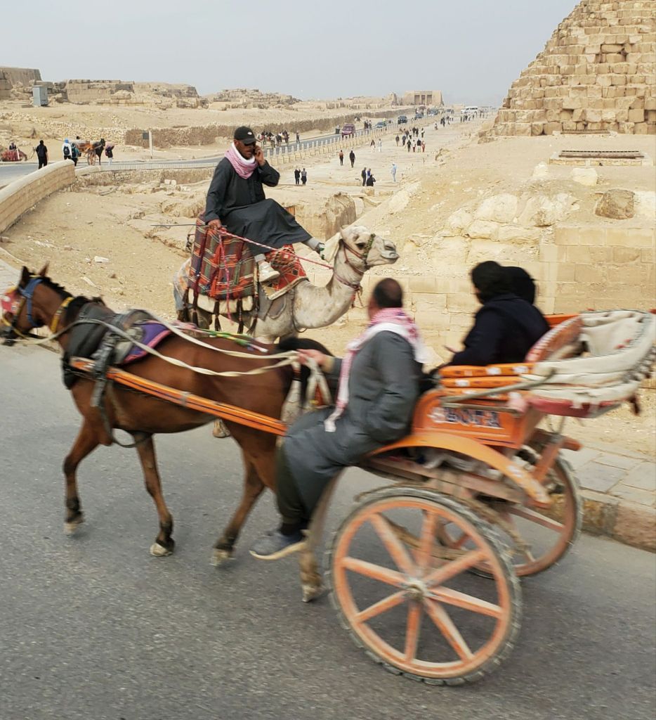 We were absolutely not interested in the camel rides at the pyramids. They were skinny, filthy, pathetic animals, with hindquarters and tails dark-stained with diahhrea and dirt. The horses pulling the carts were in similar if not worse shape. They are all roughly treated by the handlers who take pains to not do this in front of the tourists.