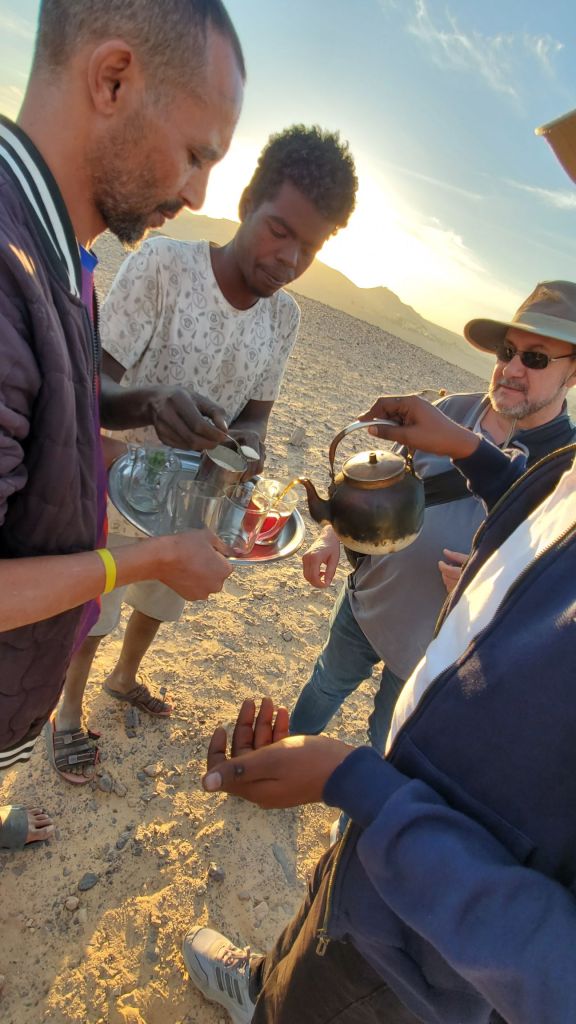 The tea was poured. Full service – they even had sugar and mint. The camel guides sang a song, we clapped along, and we danced.