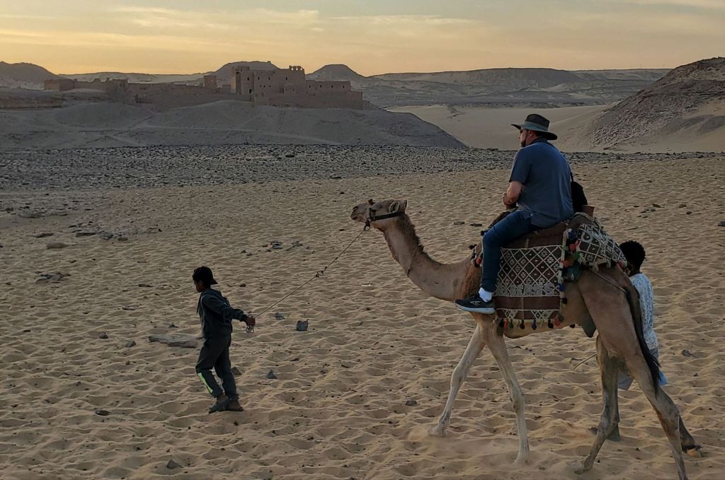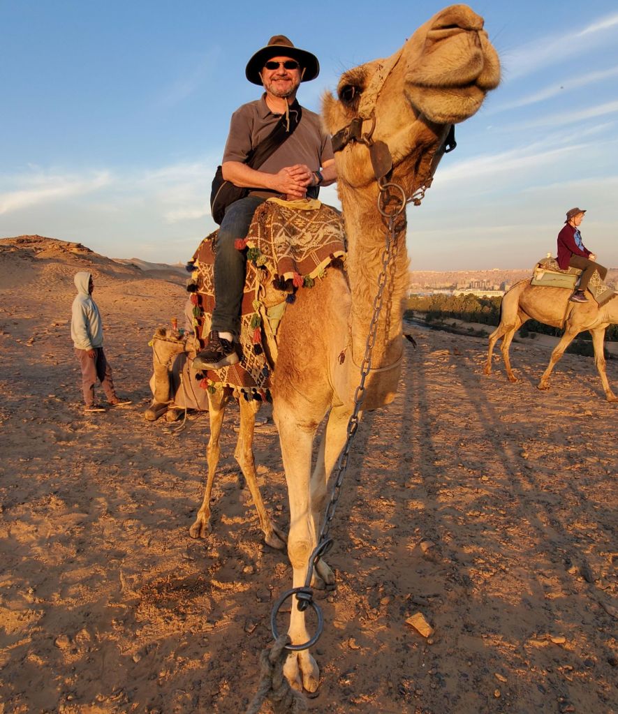 The first challenge of camel riding is mounting. This starts by throwing your leg over basically the back of a sofa. The camel then stands up hind legs first, then the front legs last. So you lean way back with both hands on the pommel and as the hinds legs rise, you unavoidably pitch forward, seemingly aiming your head at the ground but miraculously the front of the camel rises just in time, whiplashing you up to what feels like 15 feet off the ground but is actually only 7 or 8 feet. King huffed and groaned audibly for a good 10 minutes. What did this mean? Did he hate me? Was I too heavy? I knew for a fact that baby Casanova was carrying a load only 10 lbs lighter than me. Mystery unsolved, we set off across the desert away from the Nile. (Tauntauns sound exactly like camels, btw.)