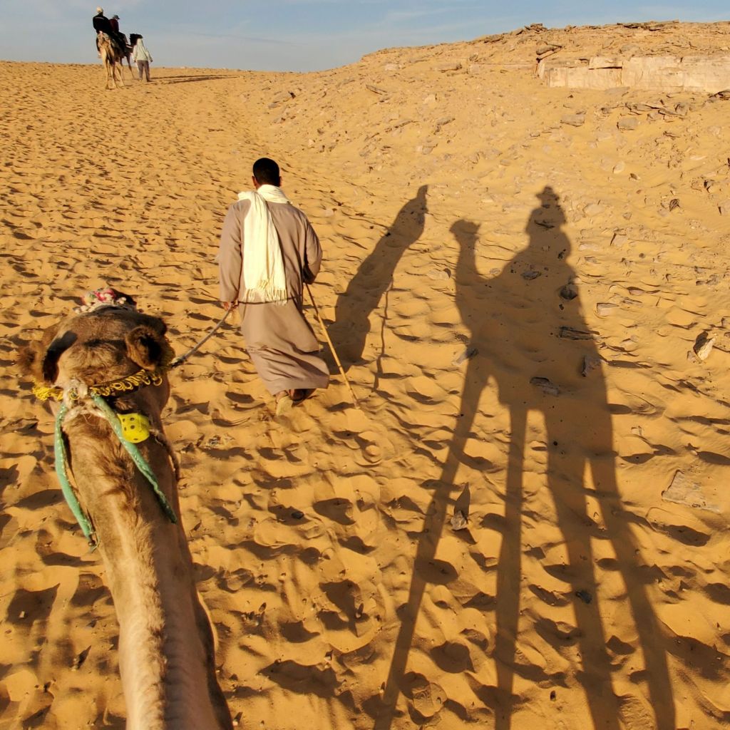 We ascended a sandy hill. Halfway up, the guides slightly loosened their neck scarves over their long flowing galabeya (we tourists were in tshirts). Walking up this sandy incline would have destroyed me, but for them it was “no big deal” and they barely broke a sweat.