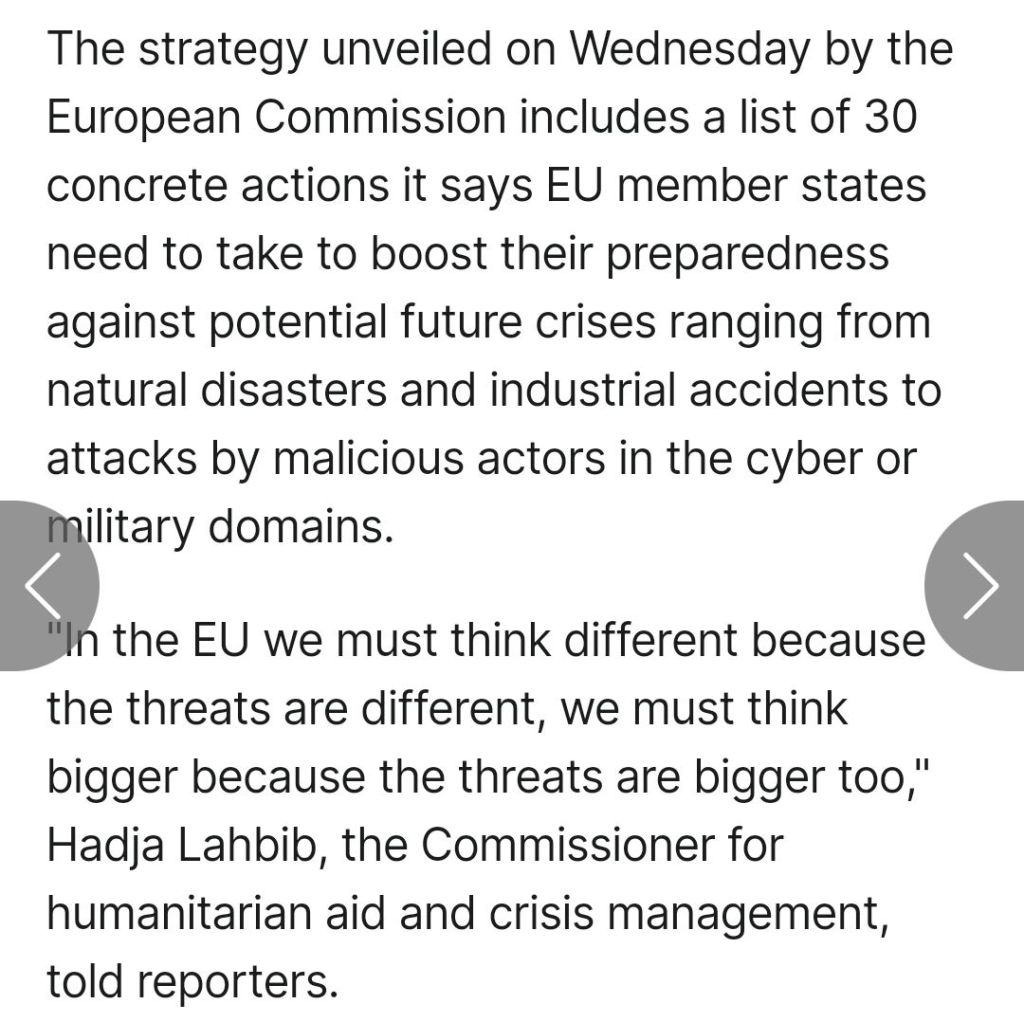 - European Commission to recommend emergency preparedness against a growing list of threats to daily life