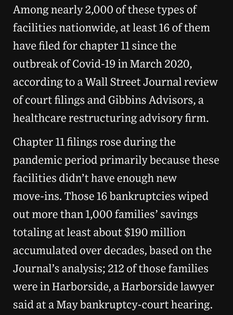 Be aware of the risk of continuing-care facilities and the ability to get your deposit back: https://www.wsj.com/finance/she-paid-1-million-to-join-a-senior-facility-its-bankruptcy-wiped-her-out-1732159d