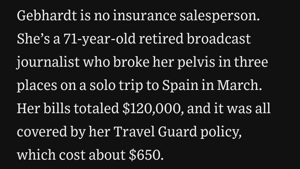 Medical services and Medical evacuation Travel Insurance – you need it. https://www.wsj.com/lifestyle/travel/you-really-should-get-health-insurance-when-traveling-abroad-a54ae84d